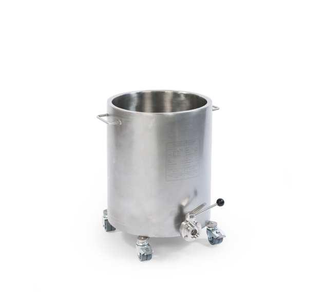 The 10 to 50 litre containers have a drain opening which can be equipped with a ball valve or a flap valve. In addition, the dispersion containers can be delivered with wheels, and a two‒part cover. Please specify the required options in your inquiry.