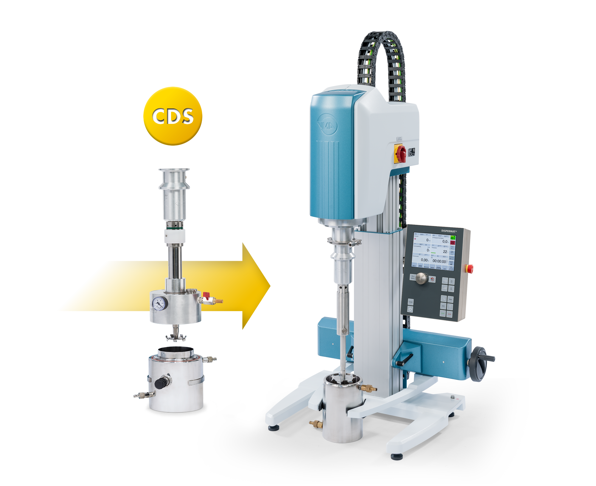 Das Vakuum-Dispergiersystem CDS erlaubt die Durchführung von Dispergierprozessen in einem vollständig geschlossenen System unter Vakuum.