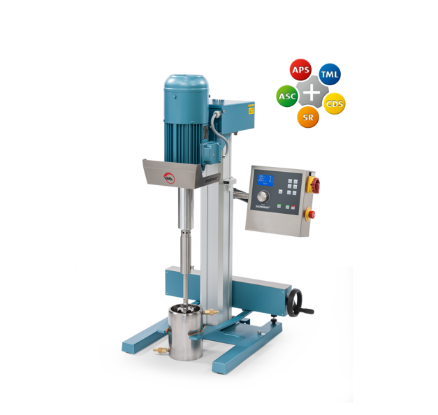 Dissolver zum Dispergieren und Feinstmahlen mit umfangreichem Zubehör.